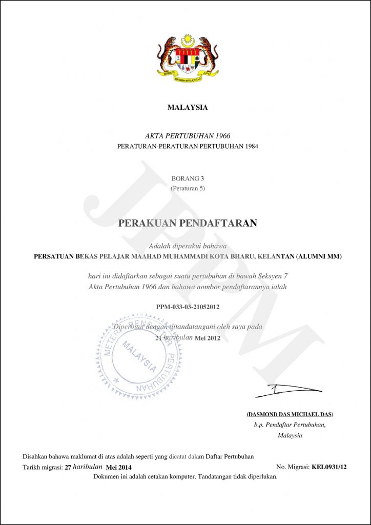 Akhirnya, melalui Mesyuarat Agung Tahunan Kali Pertama Persatuan Bekas Pelajar Maahad Muhammadi (Perempuan), Jalan Merbau, Kota Bharu, Kelantan, Malaysia (2011) (Alumni MMP) yang diadakan pada 24 September 2011, Persatuan ini yang telah didaftarkan pada 5 Mei 2011 telah membuat satu pengorbanan yang besar dengan meminda Undang-undang Tubuhnya dengan menggugurkan perkataan “Perempuan” sekaligus memberi tempat kepada penglibatan bekas-bekas pelajar Maahad Muhammadi dari kalangan Lelaki di dalam Persatuan yang baru ditubuhkan ini.